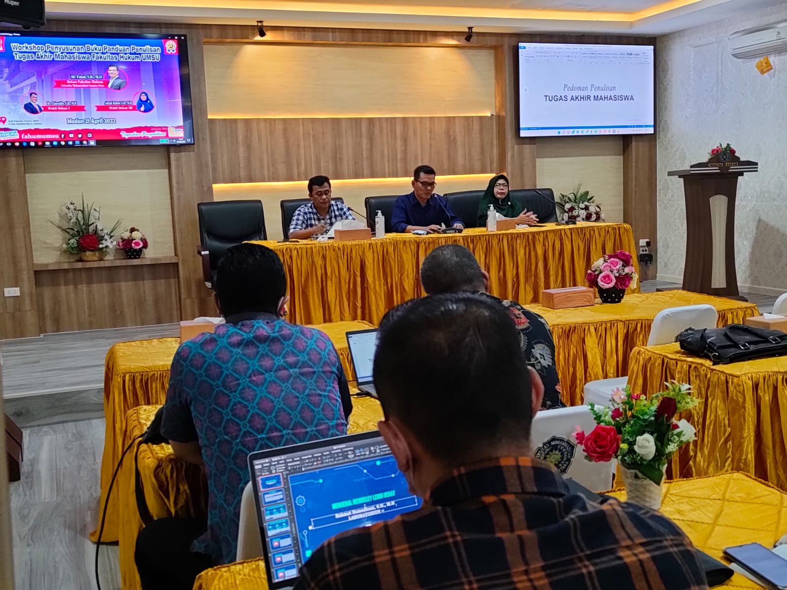 Kegiatan workshop pedoman penulisan tugas akhir mahasiswa tersebut, menjadi bagian dari serangkaian kegiatan yang diselenggarakan Fakultas Hukum UMSU di bulan ramadan. Kegiatan Worskshop ini juga dihadiri oleh Wakil Dekan III, Atikah Rahmi, SH., MH, Kepala Bagian, Rahmat Ramahani, S.H., M.H kepala Laboratorium, Ismail Koto, S.H., M.H Sekretaris Laboratorium Fakultas Hukum serta UPM-GPM.