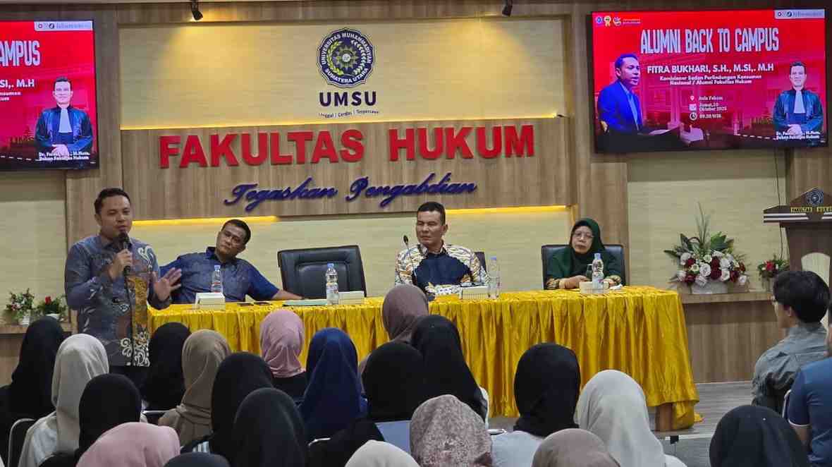 Fakultas Hukum Universitas Muhammadiyah Sumatera Utara (Fahum UMSU) menggelar acara “Alumni Back To Campus” menghadirkan Ketua Advokasi Badan Perlindungan Konsumen Nasional Republik Indonesia (BPKN RI), Fitrah Bukhari SH MSi MH.