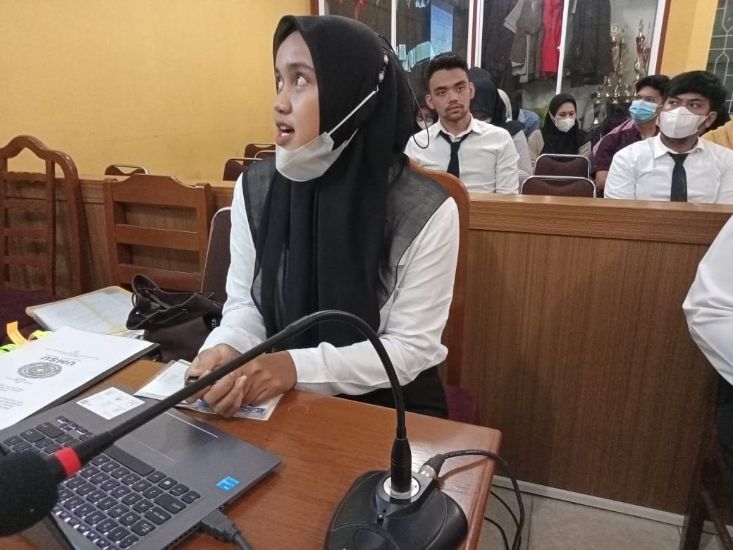Pada hari ini Jum’at, 25/3/2022 Dekan Fakultas Hukum UMSU Dr. Faisal, SH., M.Hum, diwakili oleh Wakil Dekan-III Atikah Rahmi, SH., MH membuka langsung Seminar Proposal Fakultas Hukum UMSU dan membacakan undangan seminar proposal nomor: 434/II.3-AU/UMSU-06/F/2022 di ruang sidang gedung C Lt. I dengan jumlah peserta seminar 16 mahasiswa sebagai peserta yakni: 1. FAHIRA NURUL AMANDA HRP (1806200343), 2. AFRIDAYANTI BR GINTING (1806200365), 3. TIARA PUTRI (1806200381), 4. SYARIFUL MAHYA (1606200449), 5. MHD AKBAR LUBIS (1806200308), 6. KHOIRUN NAFISA DAULAY (1806200430), 7. MUTIARA KHAIDA HASIBUAN (1806200412), 8. RISKE EKA PUTRI (1806200408), 9. ALYA IZDIHAR JAYUR SINAGA (1806200409), 10. RANI PRAMESWARI (1806200400), 11. NAUFAL ZUHDI (1606200318), 12. NUR NABILLAH (1706200124), 13. MUHAMMAD RIFQI (1806200094), 14. DIMAS HARRY AGUSTINO (1806200294), 15. ARDI NUR ABDUL HAKIM (1806200204), 16. ANDI WAHYU EKA PUTRA. S (1806200178).