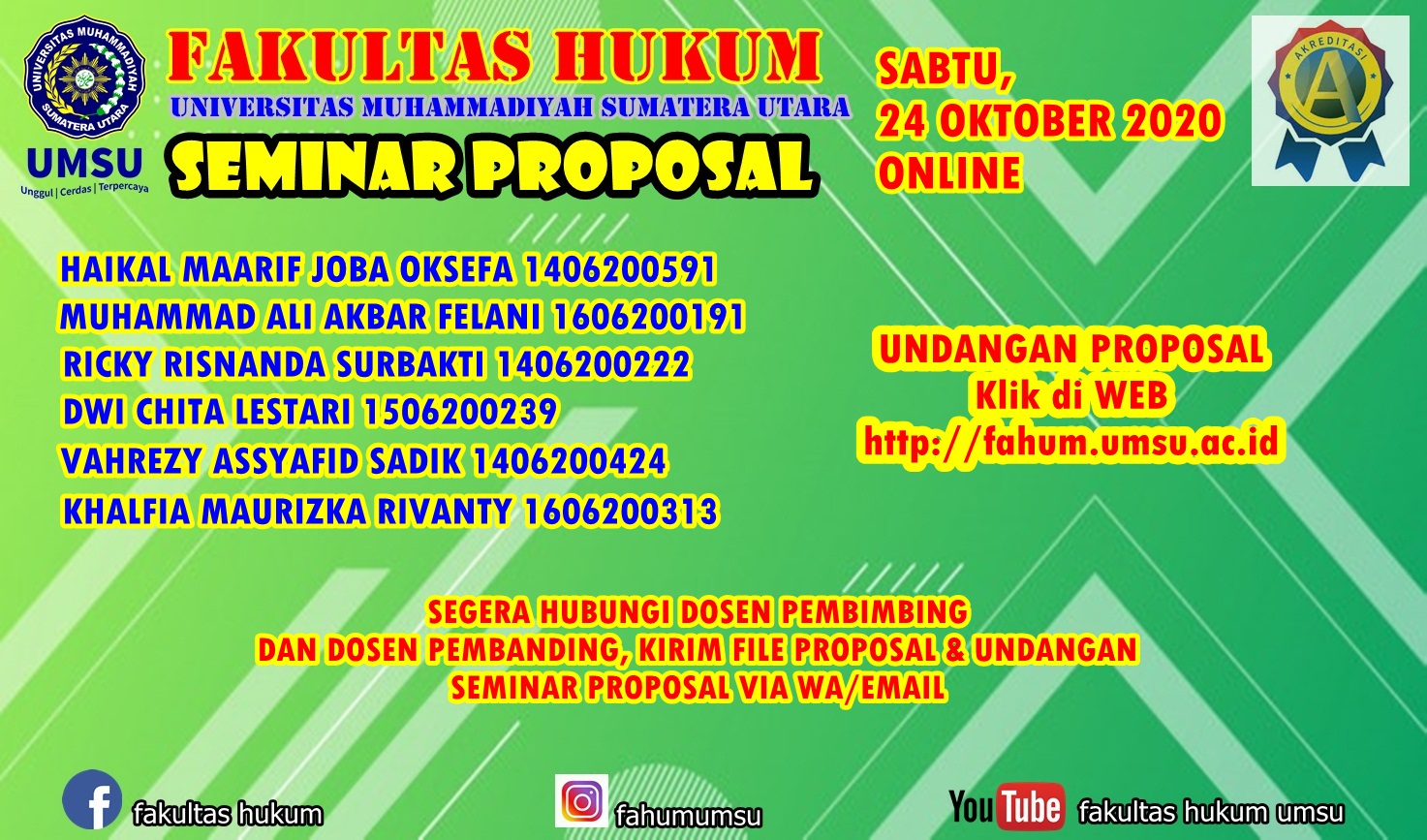 Read moreDetailsBagi Mahasiswa yang SEMINAR PROPOSAL, agar segera mengirimkan UNDANGAN Seminar Proposalnya Kepada Dosen PEMBIMBING dan PEMBANDING Via Email/WA disertai FILE...