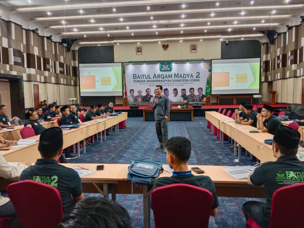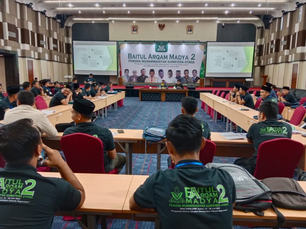 Medan – Dekan Fakultas Hukum UMSU Dr Faisal SH MHum memberikan pemaparan terkait Jihad Konstitusi Muhammadiyah dalam Kegiatan Kaderisasi Baitul Arqam Madya (BAM) yang digelar Pimpinan Wilayah Pemuda Muhammadiyah Sumatera Utara di LPMP Sumut, Sabtu (25/6/2022).