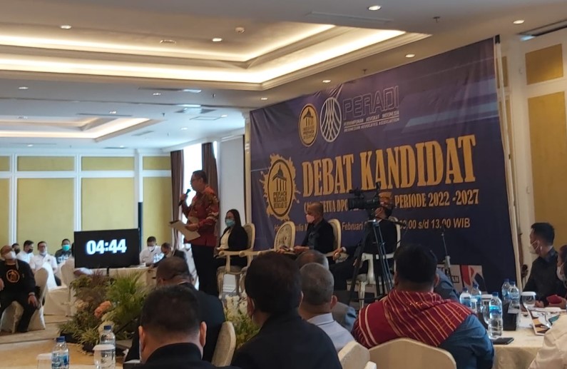 “Dengan diadakannya acara debat ini, para advokat yang tergabung dalam wadah Peradi dapat menilai sosok pemimpin yg memiliki visi yang jelas dan misi yang terukur sehingga tidak salah memilih pumpinannya kedepan, ibarat memilih kucing dalam karung”, ujarnya.
