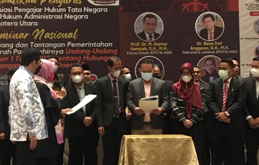 Pengukuhan tersebut dilakukan oleh Ketua PP APHTN-HAN Dr Siti Marwiyah, SH.,MH di Polonia Hotel, Medan,, Sabtu (26/2/22).