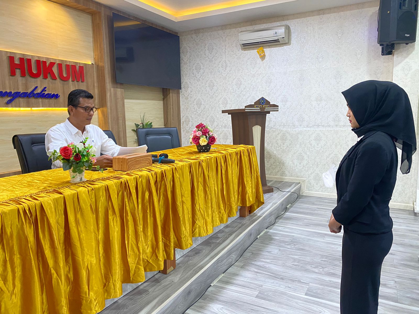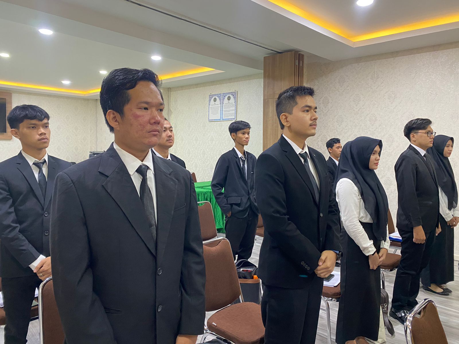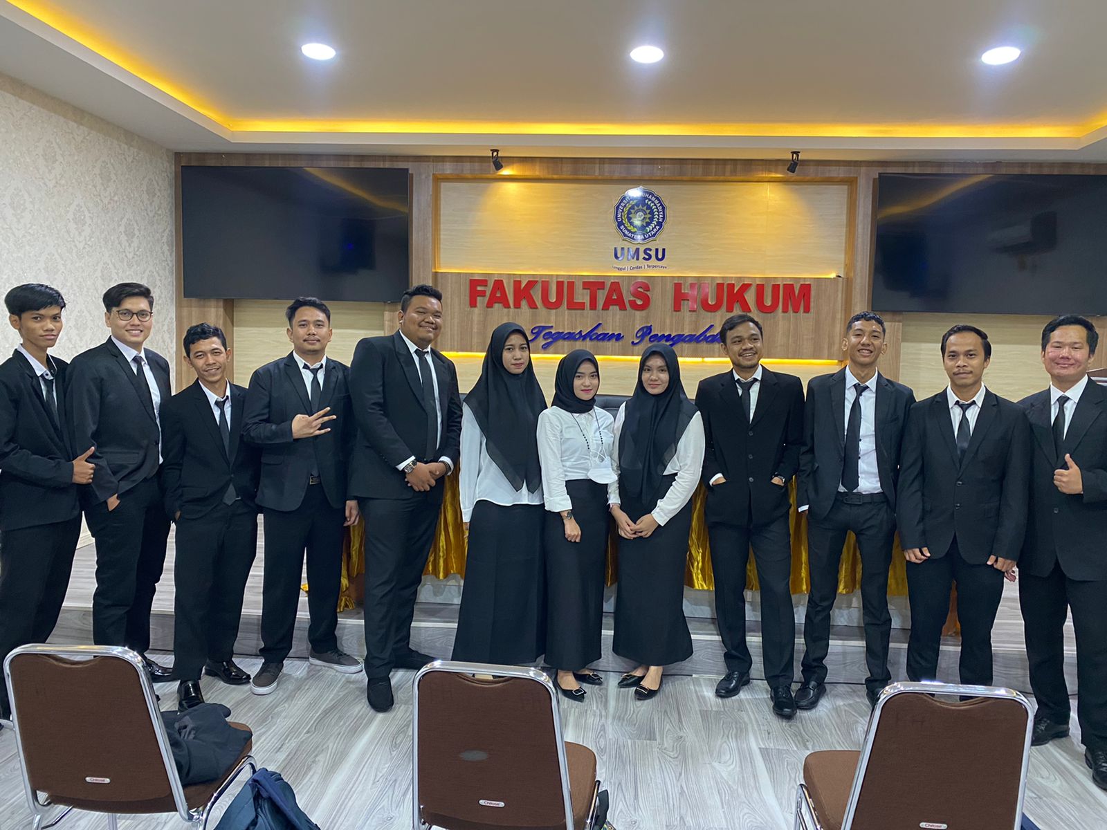 Pada hari ini Senin, 15/8/2022 Dekan Fakultas Hukum UMSU Dr. Faisal, SH., M.Hum membuka langsung Sidang Meja Hijau Fakultas Hukum UMSU dan membacakan undangan Sidang Meja Hijau nomor: 1114/II.3-AU/UMSU-06/F/2022 di ruang sidang gedung C Lt. I dengan jumlah peserta 15 orang mahasiswa, Kelimabelas peserta yakni: 1. FAJAR MAULID PELIS 1506200388, 2. SUTAN NUGRAHA NASUTION 1506200520, 3. ARDI NUR ABDUL HAKIM 1806200204, 4. FRIZCA HAZMI 1806200084, 5. ARIEF RAMADHAN 1706200254, 6. IBNU RAJA LUBIS 1806200136, 7. AULIA RAHMAT SIREGAR 1506200049, 8. RAY GUNANDI PILIANG 1806200481, 9. DESSY SRI RAHMADANI 1806200401, 10. DZAKY FAUZAN 1506200321, 11. NOVRI YANDA SAPUTRA 1806200069, 12. TUBAGUS FADLY 1606200088, 13. FADIEL SASTRANEGARA 1506200446, 14. LINDA PERMATASARI 1506200548, 15. MUHAMMAD RAZAQ FIRDAUS 1706200218. Tak lupa pada kesempatan ini Dr. Faisal, SH., M.Hum selalu mengingatkan kepada peserta Sidang Meja Hijau agar dapat meyakinkan Dosen Pembimbing dan Dosen Pembanding tentang isi Skripsi yang dibentang pada kesempatan ini, juga menerima masukan dan tanggapan dari Dosen Pembimbing dan Dosen Penguji dan selalu bersikap tenang/santai dalam memaparkan Skripsinya pesan Dr. Faisal, SH., M.Hum, diakhiri dengan photo bersama dengan Dekan Fakultas Hukum UMSU Dr. Faisal, SH., M. Hum.