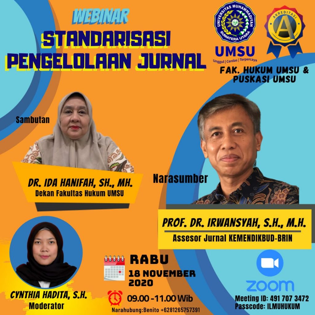 Repost; TAJDID.ID-Medan || Fakultas Hukum Universitas Muhammadiyah Sumatera Utara (UMSU) bekerjasama Pusat Studi Konstitusi dan Anti Korupsi UMSU (PUSKASI-UMSU) menyelenggarakan kegiatan webinar Standarisasi Pengelolaan Jurnal.