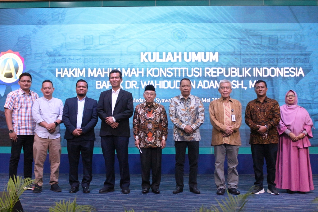 Medan, Fakultas Hukum Universitas Muhammadiyah Sumatera Utara bersama Pusat Kajian Konstitusi dan Anti Korupsi Universitas Muhammadiyah Sumatera Utara (PUSKASI UMSU) dan Assosiasi pengajar HAN/HTN Sumatera Utara menggelar Kuliah Umum Hakim Mahkamah Konstitusi (MK) Republik Indonesia Dr. H. Wahiduddin Adams, SH., MA yang digelar Sabtu, (21/5/2022) di Auditorium UMSU, Jl Kapten Mukhtar Basri Medan.