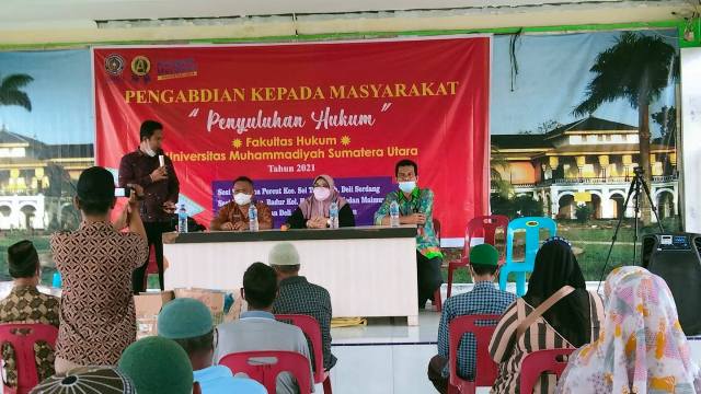 Repost: TAJDID.ID~Medan || Fakultas Hukum Universitas Muhammadiyah Sumatera Utara (UMSU) melaksanakan Pengabdian Masyarakat dalam bentuk pemberian penyuluhan hukum kepada warga Desa Percut, Kecamatan Percut Sei Tuan, Kabupaten Deliserdang, Jum’at (4/6).
