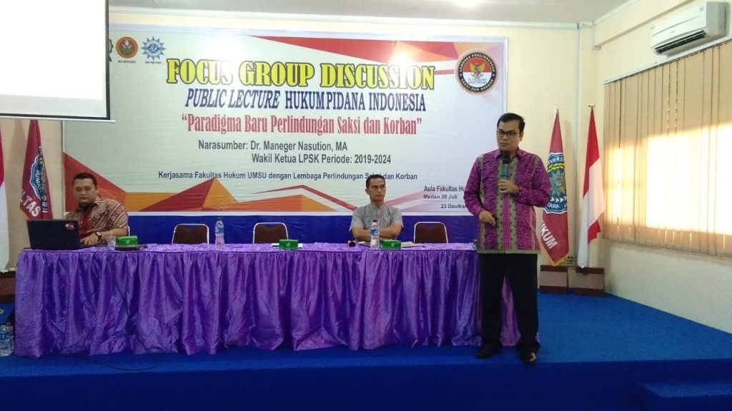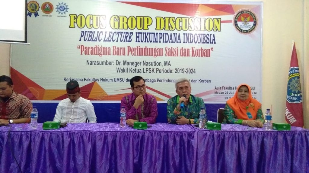 Fakultas Hukum Universitas Muhammadiyah Sumatera Utara (FH UMSU) bekerjasama dengan Lembaga Perlindungan Saksi dan Korban (LPSK) menggelar kegiatan Focus Group Discussion (FGD) Public Lecture Hukum Pidana Indonesia, dengan tema “Paradigma Baru Perlindungan Saksi dan Korban”