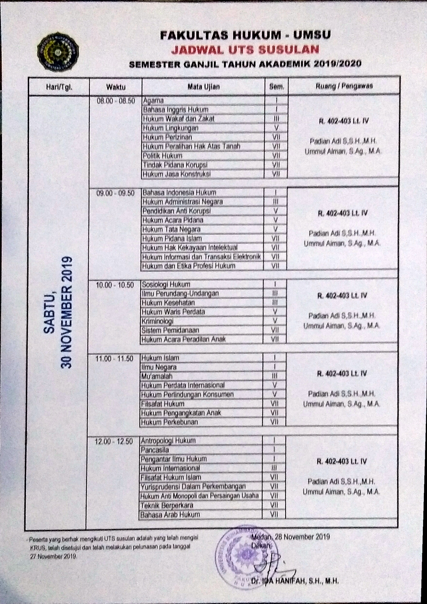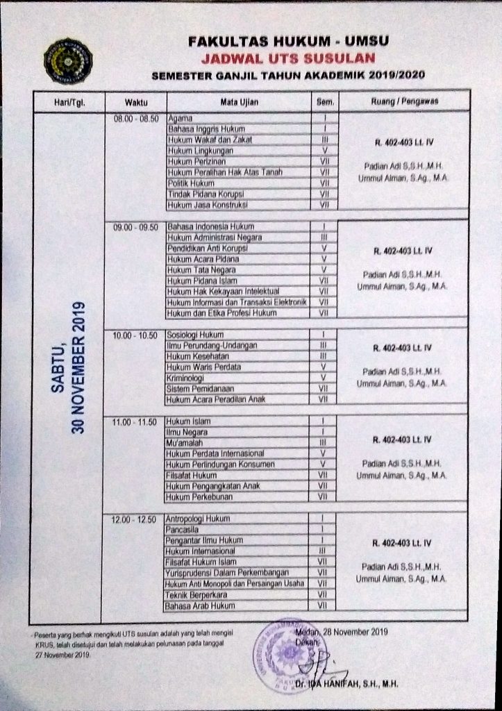 JADWAL UTS SUSULAN SEMESTER GANJIL T.A 2019/2020