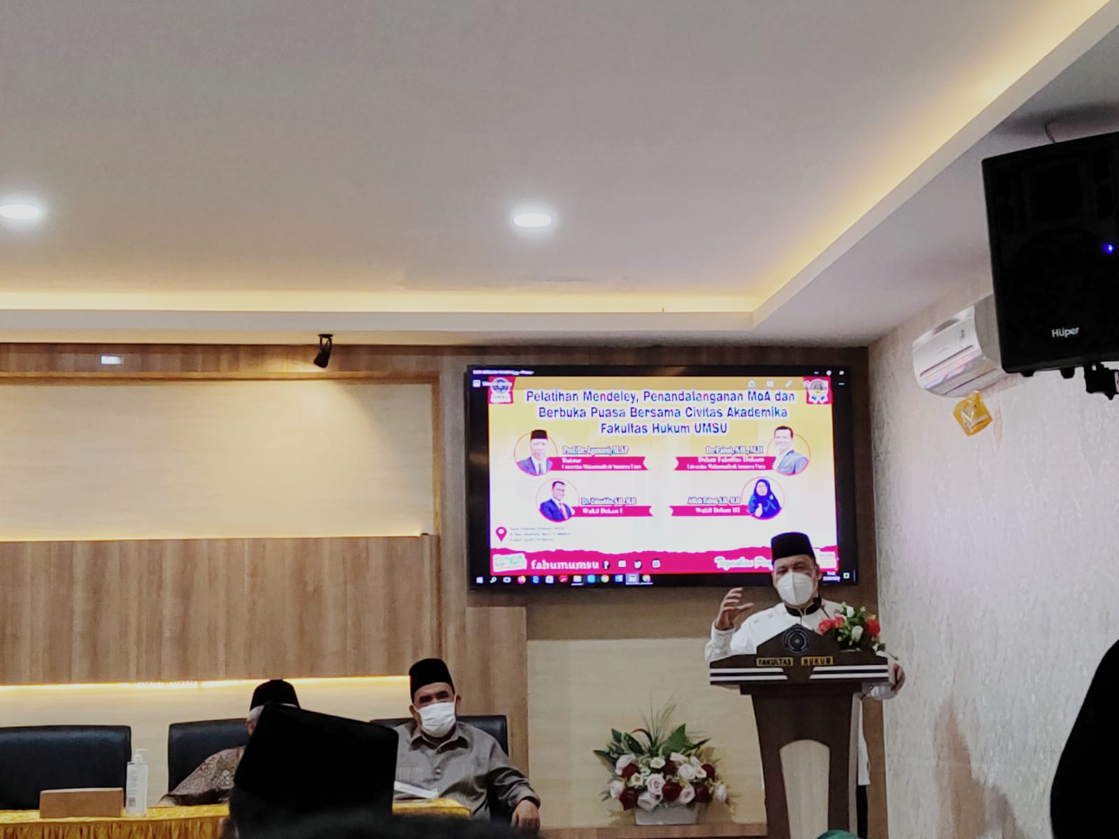 Diawali sambutan oleh Dekan Fakultas Hukum UMSU Bapak Dr. Faisal S.H., M.Hum menyampaikan terima kasih kepada para hadirin yang sudah mau berhadir dalam acara buka puasa, dan menyinggung sedikit permohonan kepada Rektor untuk meminta Pimpinan Pusat yang akan hadir pada sabtu 23/4/22 dalam rangka meresmikan Aula Baru Fakultas Hukum UMSU, sedangkan sambutan Oleh Rektor sedikit menyampaikan bahwa Kegiatan Buka Puasa Bersama oleh Fakultas Hukum merupakan, kegiatan Buka Puasa ketiga di lingkungan Universitas Muhammadiyah Sumatera Utara. Seperti halnya acara Buka Puasa pada umumnya Fakultas hukum juga mengundang bapak Drs. Mahmud Yunus Daulay M.A sebagai penceramah dengan materi ceramah 5 tingkatan orang yang bertaqwa dalam Islam, diantaranya Muslim, Mukmin, Mukhsin, Mukhlis dan Muttaqin. Dan di akhiri dengan Buka Puasa Bersama yang telah disediakan dengan cara kekeluargaan sebab selain dosen, turut pula keluarga besar fakultas hukum berhadir dalam acara tersebut. (21/4/2022)