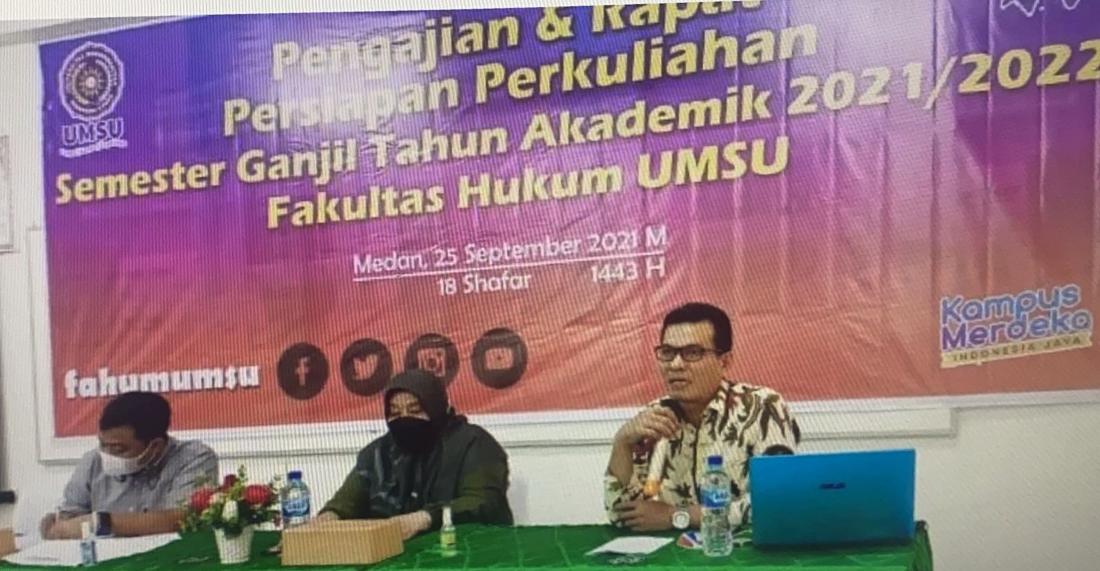 “Saaat ini kita merencanakan kuliah secara daring dan skema pertemuan tatap muka. Selama ini kita kuliah daring, tetapi apabila keputusan mengizinkan tatap muka, maka Fakultas Hukum UMSU telah siap dengan sistem itu. Jadwal kuliah sudah didistribusikan kepada dosen, silahkan bapak ibu mempersiapkan bahan perkuliahan semester ganjil T.A 2021/2022,” ujarnya.