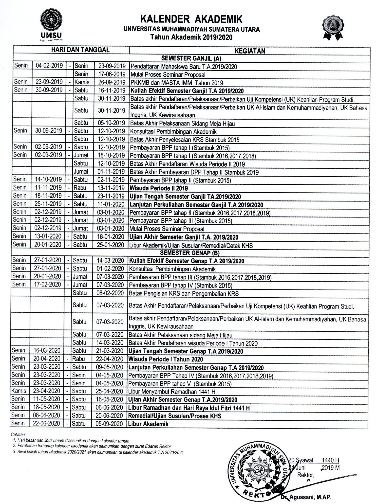 KALENDER AKADEMIK T.A 2019-2020 FAKULTAS HUKUM UMSU