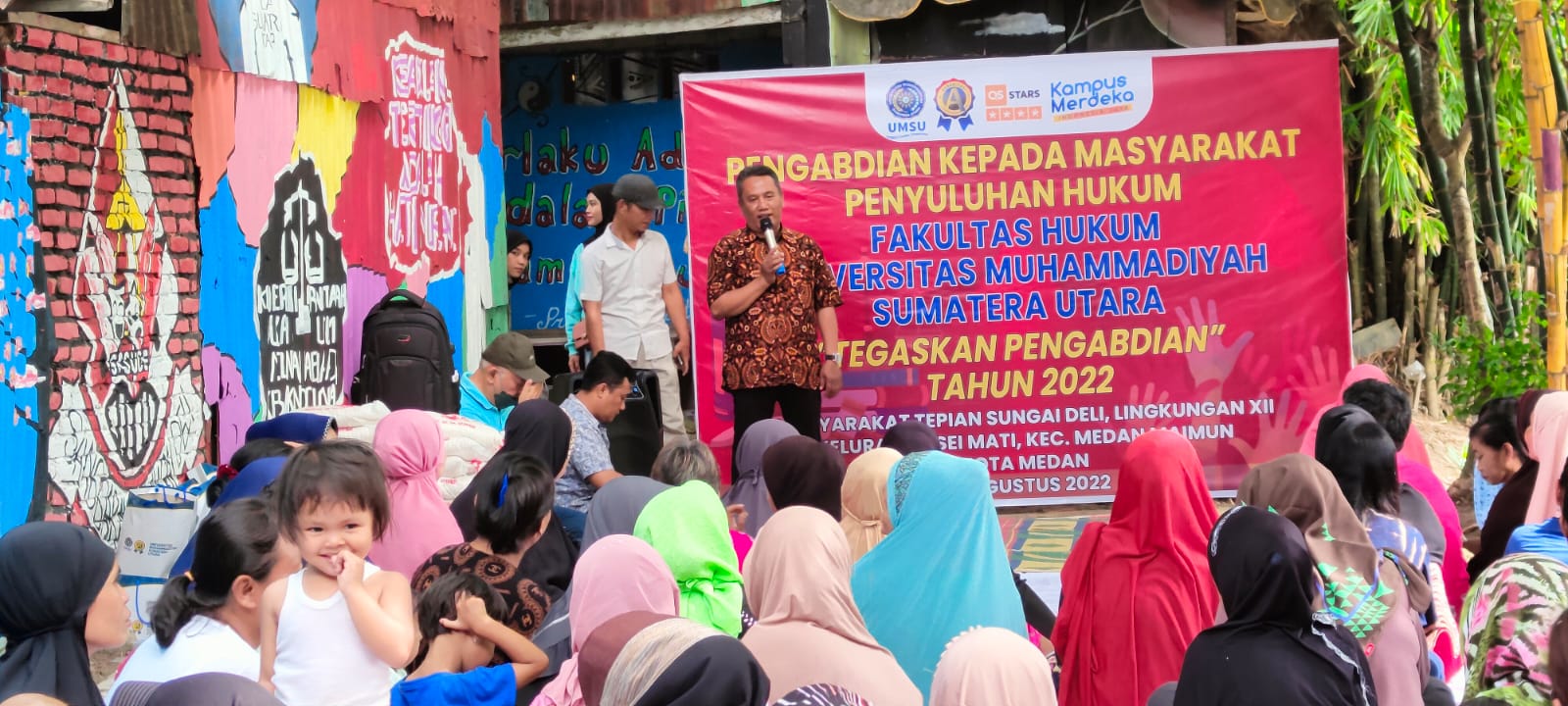 Sabtu, 6 Agustus 2022. Fakultas Hukum melaksanakan Pengabdian Masyarakat di pinggiran Sungai Deli yang bekerjasama dengan Sanggar Anak Sungai Deli (SASUDE). Kegiatan tersebut sekaligus penyerahan naskah kerjasama antara Fakultas Hukum UMSU dengan Sanggar Sungai Deli yang telah ditandatangani di bulan juni 2022.