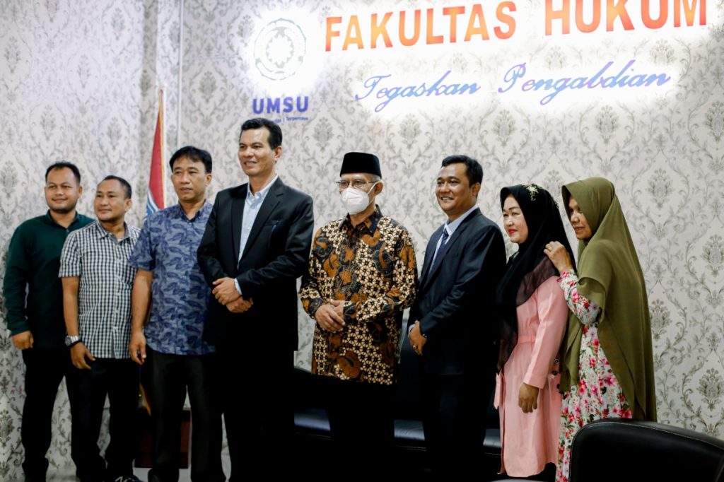 Medan, 24 Mei 2022. Pelantikan Rektor Universitas Muhammadiyah Sumatera Utara dilaksanaka di auditorium Universtitas Muhammadiyah Sumatera Utara, dalam kegiatan pelantikan tersebut, turut hadir ketua umum pimpinan pusar muhammadiyah Bapak Prof. Dr. K.H. Haedar Nashir, M.Si. sebelum acara pelantikan dimulai ketua umum pimpinan pusar muhammadiyah menyempatkan diri untuk mengunjungi gedung dan fasilitas belajar yang ada di Universitas Muhammadiyah Sumatera Utara, salah satunya adalah Fakultas Hukum UMSU.
