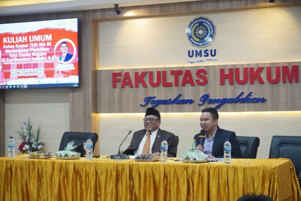 Selasa, 13 September 2022. Kuliah Umum yang diselenggarakan oleh Fakultas Hukum UMSU dengan Narasumber Prof. Dr. H. Supandi, S.H., M.Hum dengan Materi yaitu “Moderenisasi Peradilan Tata Usaha Negara di Era Revolusi Industri 4.0 Untuk Mendorong Kemajuan Peradaban Hukum Indonesia” di Aula Fakultas Hukum UMSU, yang di Moderatori oleh dosen Fakultas Hukum UMSU Ismail Koto, S.H., M.H