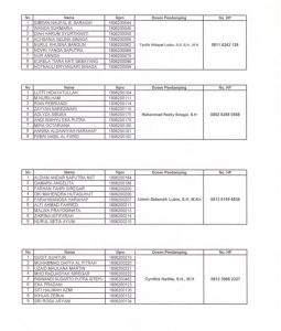 Berikut di informasikan kepada mahasiswa/i stambuk 2018, 2017, 2016 dosen pendamping Klinis hukum mandiri.