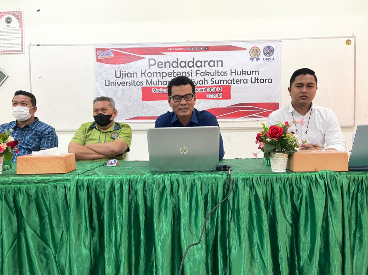 Kegiatan ini dihadiri oleh Dekan Fakultas Hukum UMSU Dr Faisal, S.H M.Hum dan kepala bagian serta panitia pelaksana kegiatan ujian kompetensi Fakultas Hukum Universitas Muhammadiyah Sumatera Utara dalam sambutannya Dekan Fakultas Hukum menyampaikan bahwa ujian kompetensi ini merupakan hal yang penting untuk dilaksanakan oleh mahasiswa akhir Fakultas Hukum Universitas Muhammadiyah Sumatera Utara , karena ini menjadi bagian dari syarat kelulusan bagi mahasiswa Fakultas Hukum Universitas Muhammadiyah Sumatera Utara, Dalam sambutannya Dekan Fakultas Hukum Universitas Muhammadiyah Sumatera Utara menyampaikan terkait dengan pelaksanaan ujian yang akan dilaksanakan secara tatap muka dan berbasis komputer di Universitas Muhammadiyah Sumatera Utara.