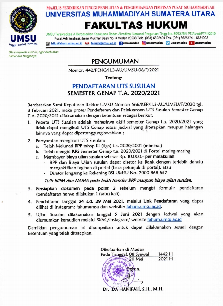 PENGUMUMAN UTS SUSULAN GENAP T.A 2020/2021