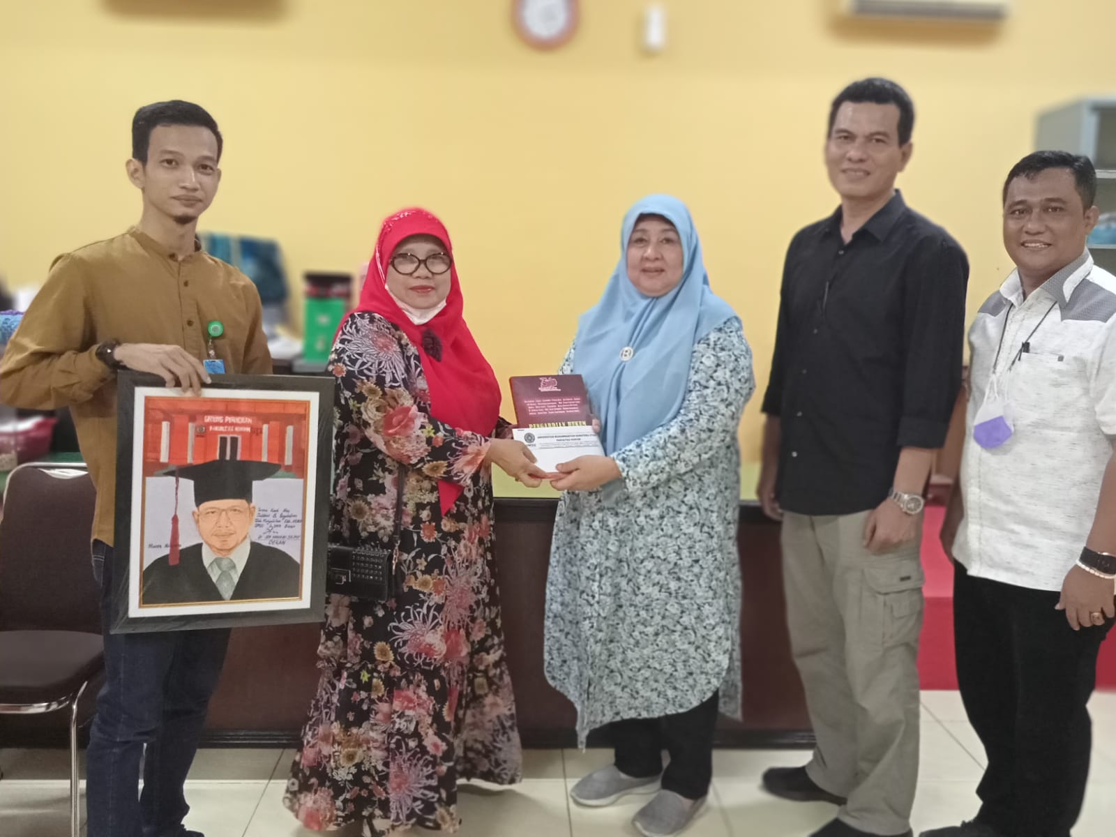 Penyerahan cinderamata kepada mantan pimpinan Fakultas Hukum Universitas Muhammadiyah Sumatera Utara diwakili oleh keluarga mantan pimpinan Fakultas Hukum Universitas Muhammadiyah Sumatera Utara.