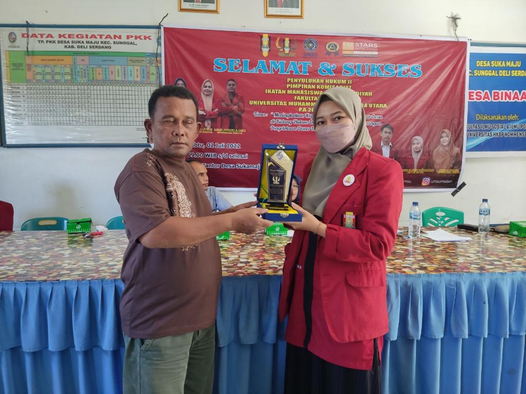 PK IMM FAHUM UMSU melaksanakan Penyuluhan Hukum II di Desa Sukamaju Indah Kecamatan Sunggal Kabupaten Deli Serdang. Dalam kegiatan ini IMM Hukum mengambil tema “Meningkatkan Kapasitas Aparatur Perangkat Desa Di Bidang Hukum Dalam Pencegahan Penyimpangan Pengelolaan Dana Desa” . “Desa Sukamaju Indah baru saja selesai pemilihan kepala desa baru sehingga, kami menganggap perlunya untuk mengangkat isu mengenai pengelolaan dana desa guna adanya transparansi antara perangkat desa dan masyarakat”, kata Ketua PK IMM Fahum UMSU dalam sambutannya.