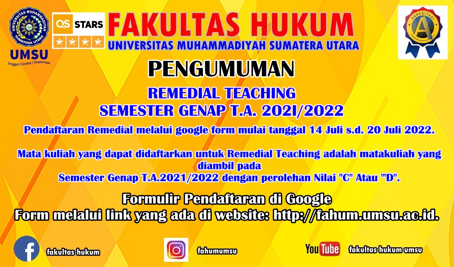 Pendaftaran Remedial melalui googlefontt mulai tanggal 14 Juli s.d. 20 Juli 2022.Untuk itu disampaikan hal-hal berikut: