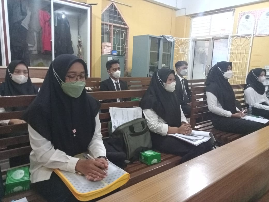 Dekan Fakultas Hukum Universitas Muhammadiyah Sumatera Utara (UMSU) Dr. Faisal, SH., M.Hum diwakili oleh Wakil Dekan-III (Atikah Rahmi, SH., MH) membuka Sidang Meja Hijau Skripsi Fakultas Hukum UMSU, pada sidang ini dengan tujuh mahasiswa peserta Sidang mempertahankan Ujian Skripsi dari berbagai stambuk yaktu: 1. Dwi Setiawati (1606200059), 2. Windi Syahfitri (1706200013), 3. Widya Novani (1706200050), 4. Amanda Rizda Fitria (1706200188), 5. Muhammad Rio Amsyah (1706200249), 6. Firmansyah Sitompul (1706200261) dan 7. Nana Pratiwi Erdilo Br. Sembiring (1706200325).
