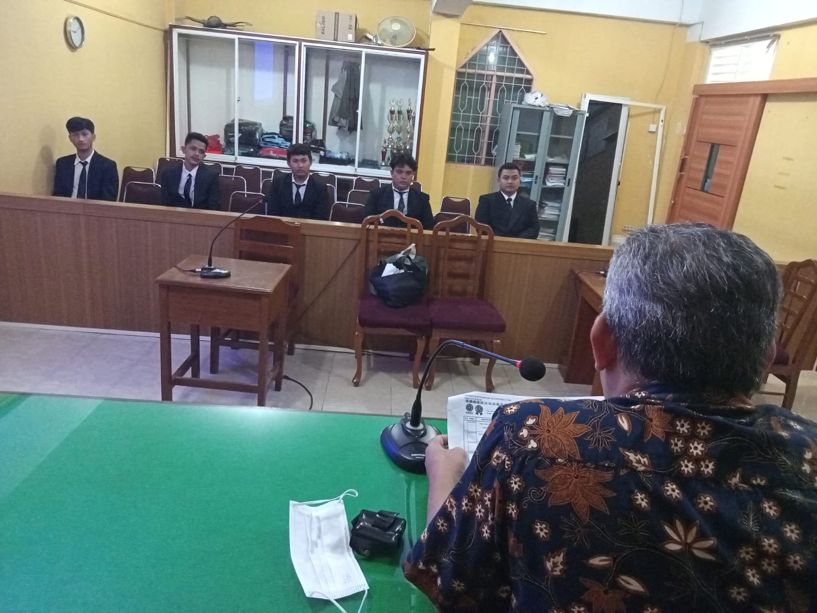 Dekan Fakultas Hukum UMSU Dr. Faisal, SH., M.Hum diwakili oleh Kepala Bagian Harisman, SH., MH pada hari ini Jum’at, 22/4/2022 membuka langsung Sidang Meja Hijau Fakultas Hukum UMSU dan membacakan undangan sidang meja hijau nomor: 508/II.3-AU/UMSU-06/F/2022 di ruang sidang gedung C Lt. I dengan jumlah peserta seminar 5 mahasiswa sebagai peserta sidang meja hijau skripsi yakni: 1. RIZKI ADHYAKSA (1706200271), 2. ARKAN FADIL SIREGAR (1606200439), 3. AHMAD RIZKI NZ GEA (1606200182), 4. SANDY PRAYOGA (1706200301) dan 5. MUHAMMAD SATRIA HASIBUAN (1506200289).