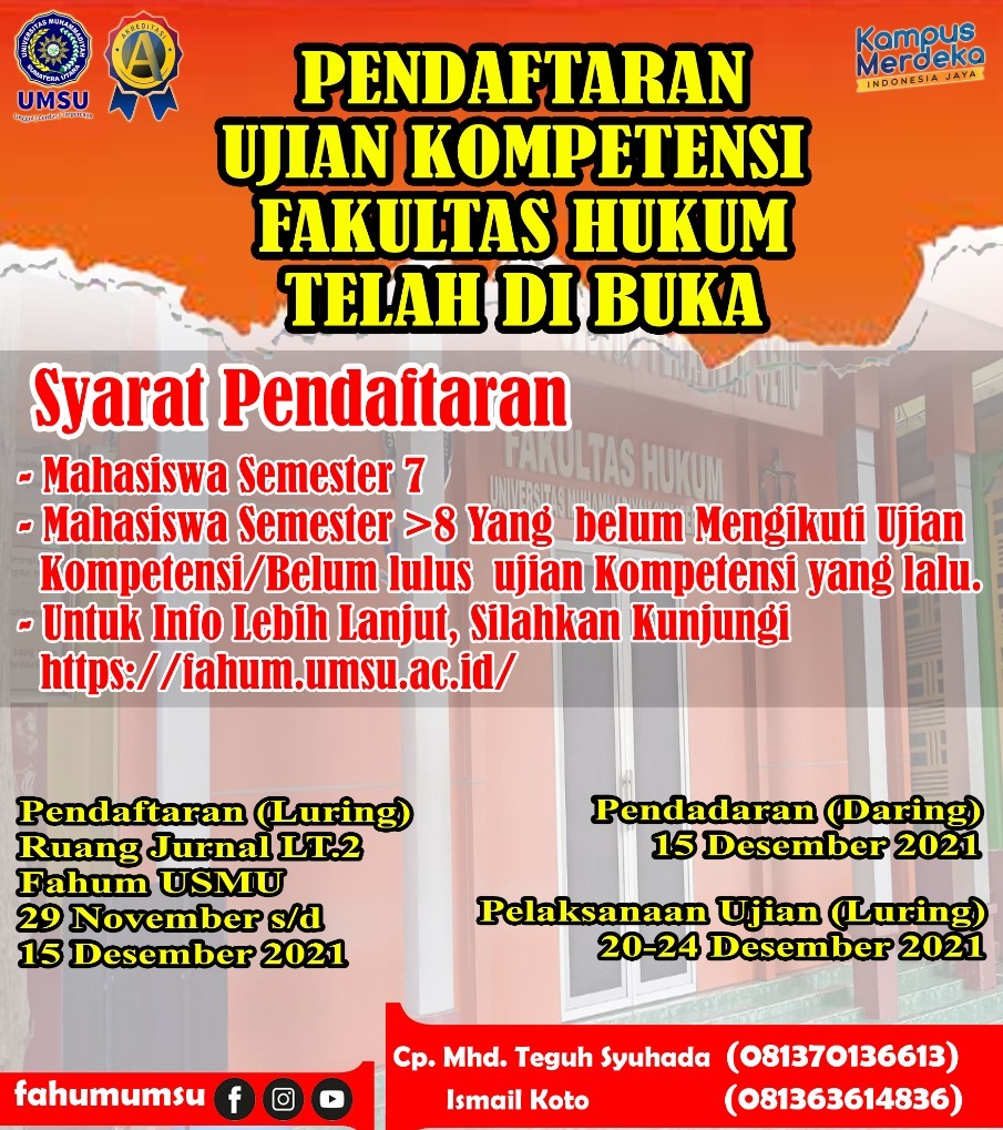 Ujian Kompetensi Fakultas Hukum UMSU telah di buka, silahkan daftarkan diri kalian.