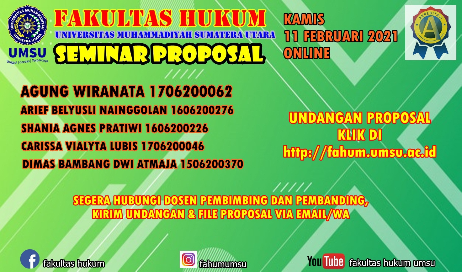 UNDANGAN SEMINAR PROPOSAL KAMIS, 11 FEBRUARI 2021 ONLINE