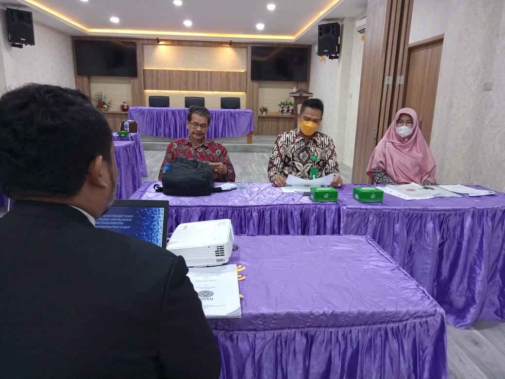 pada kesempatan ini hadir Dosen-Dosen Pembimbing dan Dosen-Dosen Penguji antara lain: Muklis, SH., MH, Nursariani Simatupang, SH., M.Hum, Erwin Asmadi, SH., MH, Irfan, SH., M.Hum. dan Benito Asdhie Kodiat MS, SH., MH.