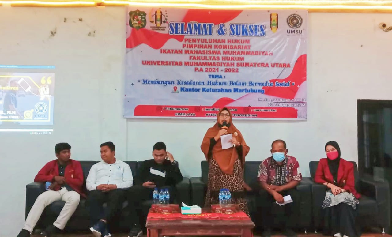Penyuluhan Hukum Pimpinan Komisariat Ikatan Mahasiswa Muhammadiyah Fakultas Hukum UMSU yang dilaksanakan pada hari Kamis,03 Februari 2022 di Aula Kelurahan Martubung dibuka dan dihadiri langsung oleh Wakil Dekan III Fakultas Hukum UMSU.